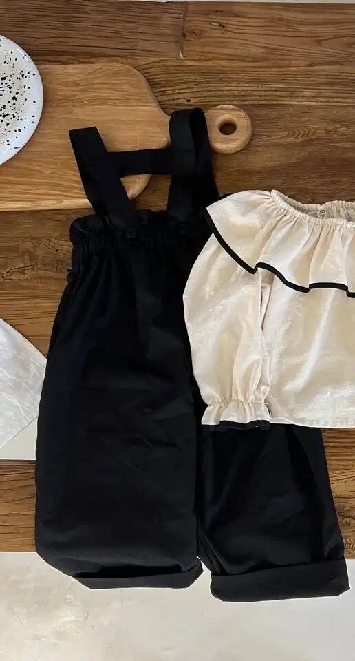 フリルシャツ&サロペットの